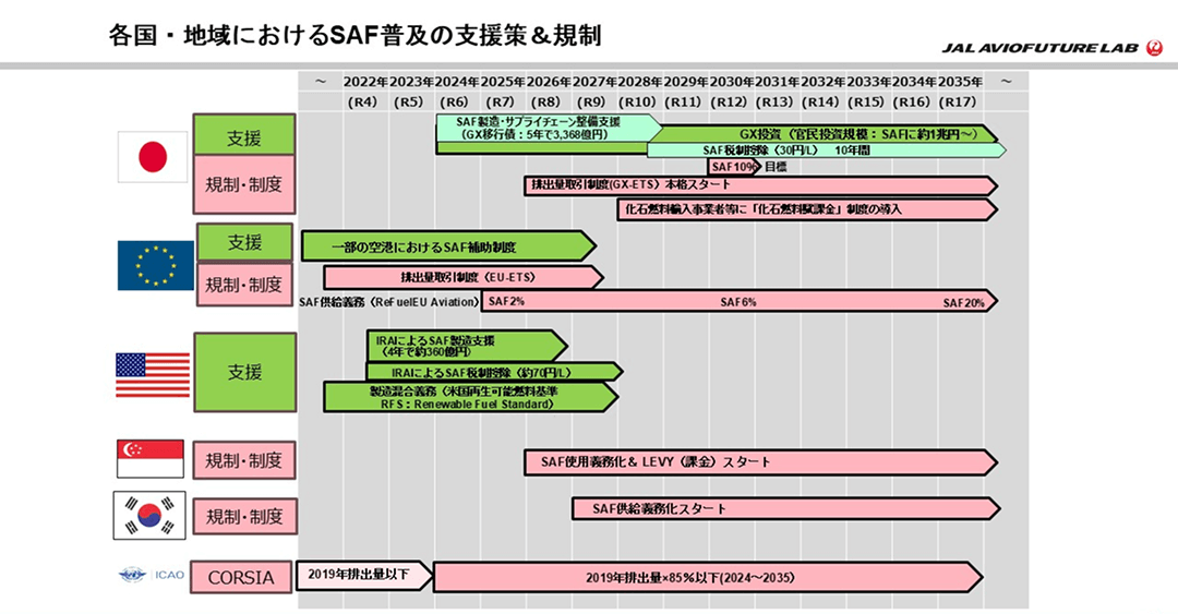 SAFの普及促進に関する各国の規制や支援、航空会社のSAFの調達状況、および現状は数量不足と価格高騰による目標達成への危機感を説明し、結びはSAFの普及促進における課題解決に向けて、関係者が取り組むべき事項についての示唆を述べています。