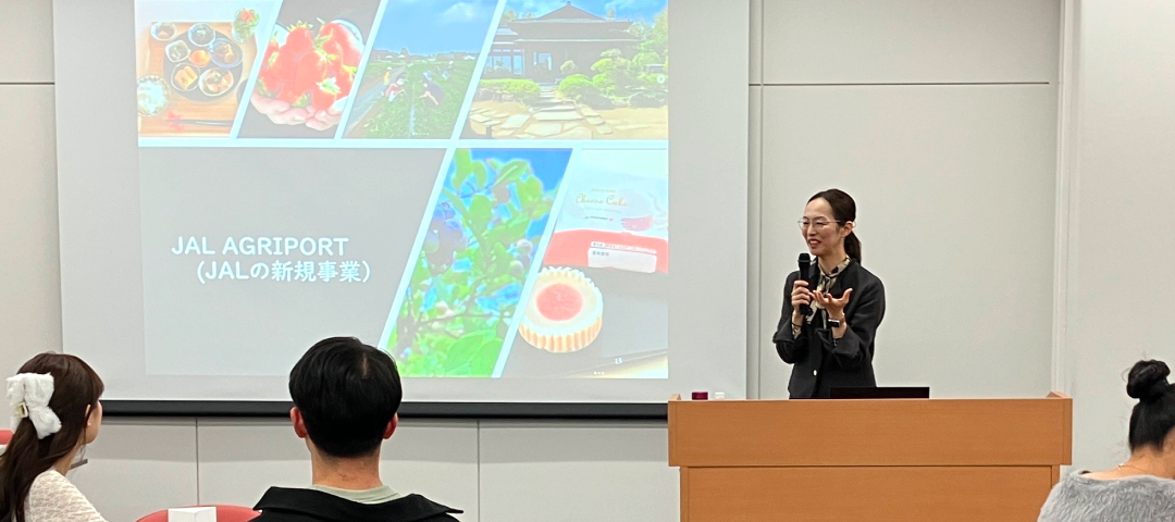 1日目は大学生を対象にワークショップを実施しました。前半のレクチャーでは、JALのESG経営の考え方や、地域との連携を軸とした「ふるさとプロジェクト」などの取り組みを紹介しました。後半では、2日目の小学生との合同セッションを見据え、「リーダーシップとチームワーク」をテーマに、立場や年齢の異なるメンバーと協働する際の視点やコミュニケーションについてお話ししました。
