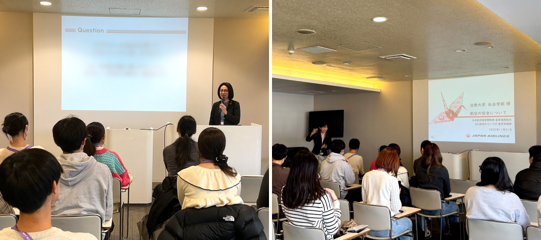 2025年11月21日、立教大学の学生の皆さんを新整備場にあるJALスカイミュージアムお迎えし、「JAL施設見学会&トークセッション」を開催しました。