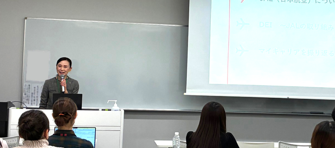 2025年12月4日、早稲田大学国際学生寮WISHで、「マイキャリアを振り返る」と題した講演を実施しました。当日はJAL航空みらいラボから講師2名が登壇し、講演の前半ではJALが取り組むESG戦略やDEI(ダイバーシティ・エクイティ&インクルージョン)についてご紹介しました。 続く後半では、自身の経験を交えながら、学生時代から現在に至るまでのキャリアの歩みをお話ししました。