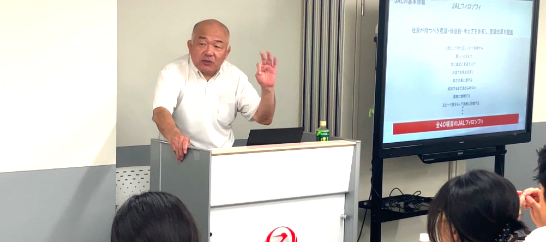 今回の研修では、JALグループの各部門の担当者が講義を担当し、企業紹介や空港見学、サービス体験といった実践的な内容に加えて、大阪・関西万博に向けた取り組みについても紹介しました。