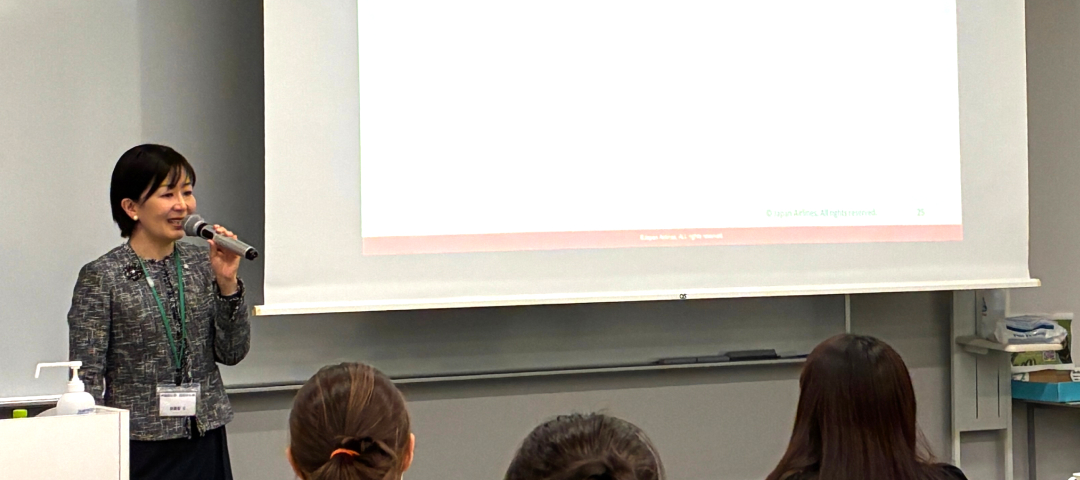 2025年12月4日、早稲田大学国際学生寮WISHで、「マイキャリアを振り返る」と題した講演を実施しました。当日はJAL航空みらいラボから講師2名が登壇し、講演の前半ではJALが取り組むESG戦略やDEI(ダイバーシティ・エクイティ&インクルージョン)についてご紹介しました。 続く後半では、自身の経験を交えながら、学生時代から現在に至るまでのキャリアの歩みをお話ししました。